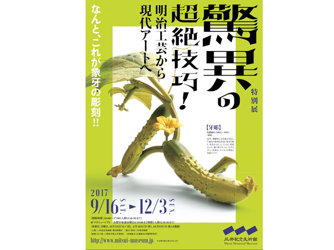 特別展「驚異の超絶技巧!明治工芸から現代アートへ」が三井記念美術館にて開催されます。