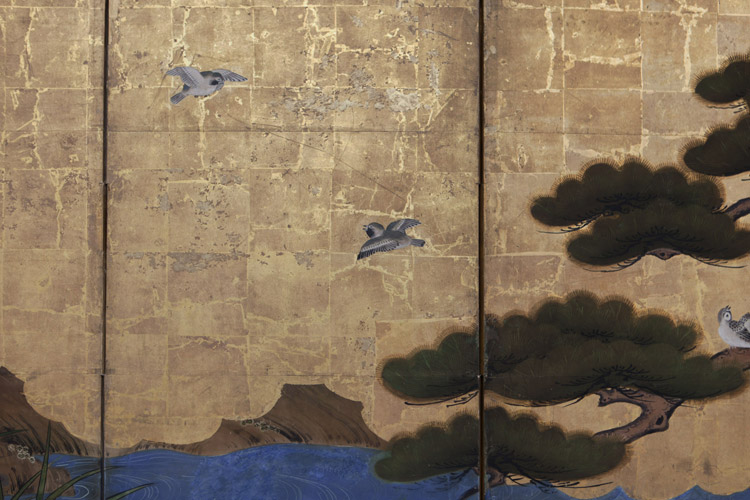 The gold patina became exellent by age. We always have our breath taken away by this patina. There is a few damage by the age, but the drawing is very good and It has features that the powerful characteristic of the Kano group.