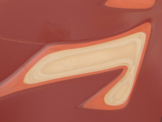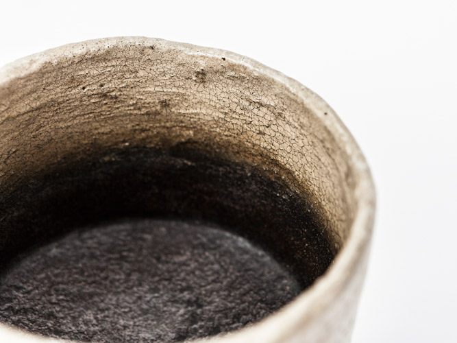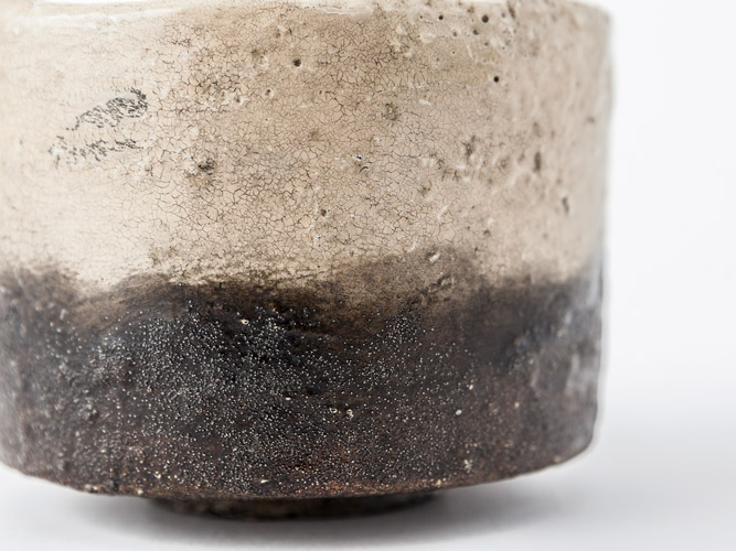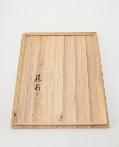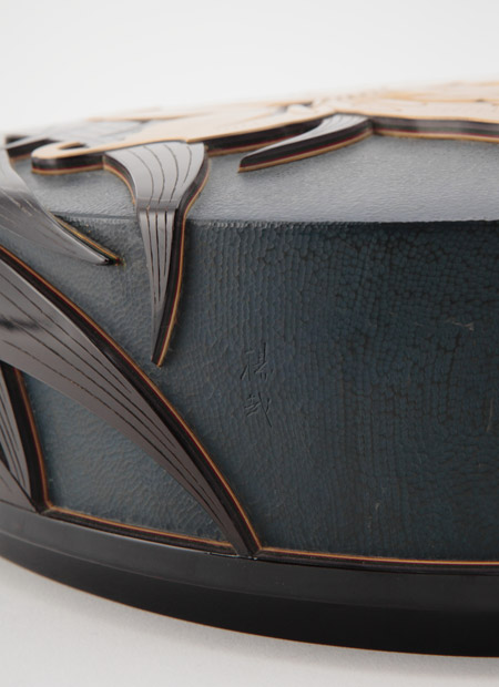 It is an amazing work to reproduce a ceramic work by the 16th century artist Hon'Ami Koetsu. Take it in your hands and it has the texture of Raku, but no weight! You realise that your eye has deceived your head, and you are holding a piece of lacquer ware. Our professional camera man didn't notice it is lacquer work. He believed it is old ceramic work until end photographing. Mr.Wakamiya strives to rediscover many 'lost' lacquer techniques, particularly in the imitation of diverse materials such as ceramic, wood and metal.